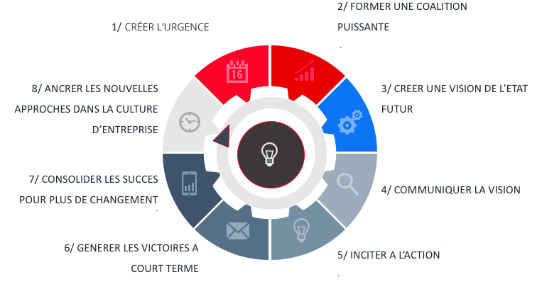 Le modèle de référence, élaboré par Kotter permet de s’adapter aux spécificités de chaque organisation :